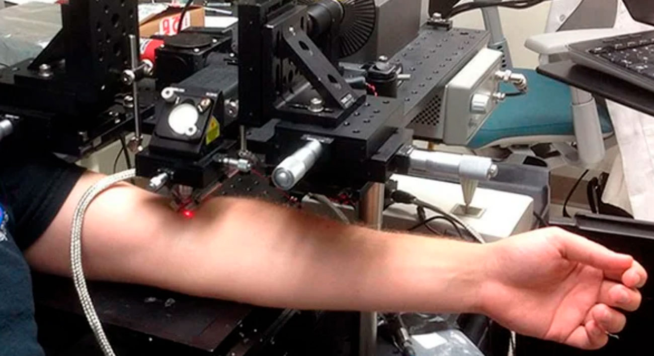 Циркулирующие опухолевые клетки меланомы поглощают намного больше тепла от лазера, чем обычные клетки. При избытке тепла они расширяются. Это тепловое расширение клеток вызывает звуковые волны — фотоакустический эффект, который улавливается ультразвуковым трасдусером. Так регистрируется наличие клеток.